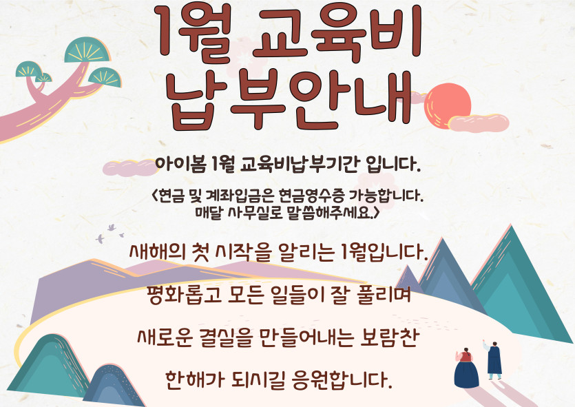 방과후카드 납부기간: 1/5(월) ~ 1/9(금)