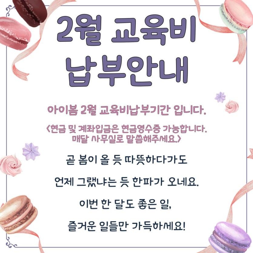 [아이봄 2월 교육비 납부 안내]
