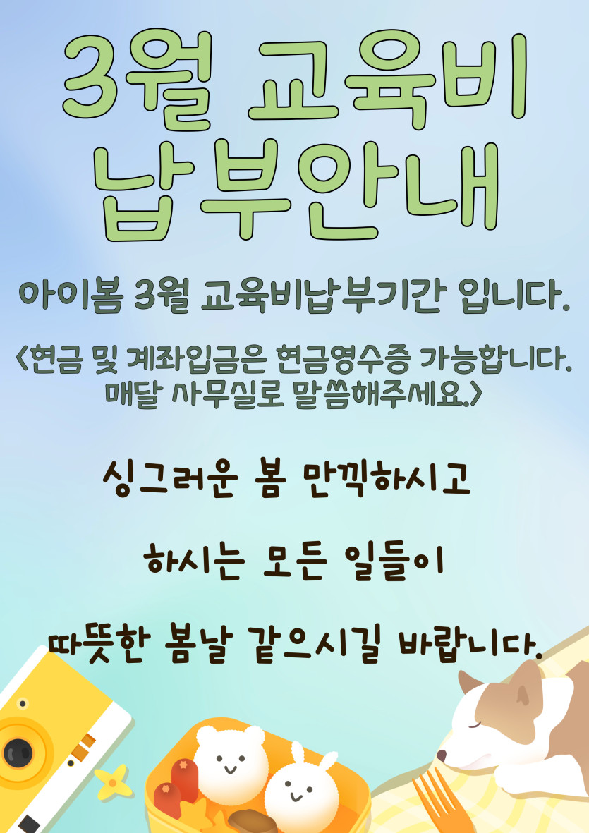 [아이봄 3월 교육비 납부 안내]