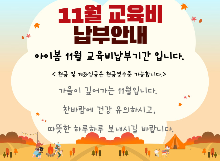 ▶ 방과후카드 납부기간: 11/3(월) ~ 11/7(금)